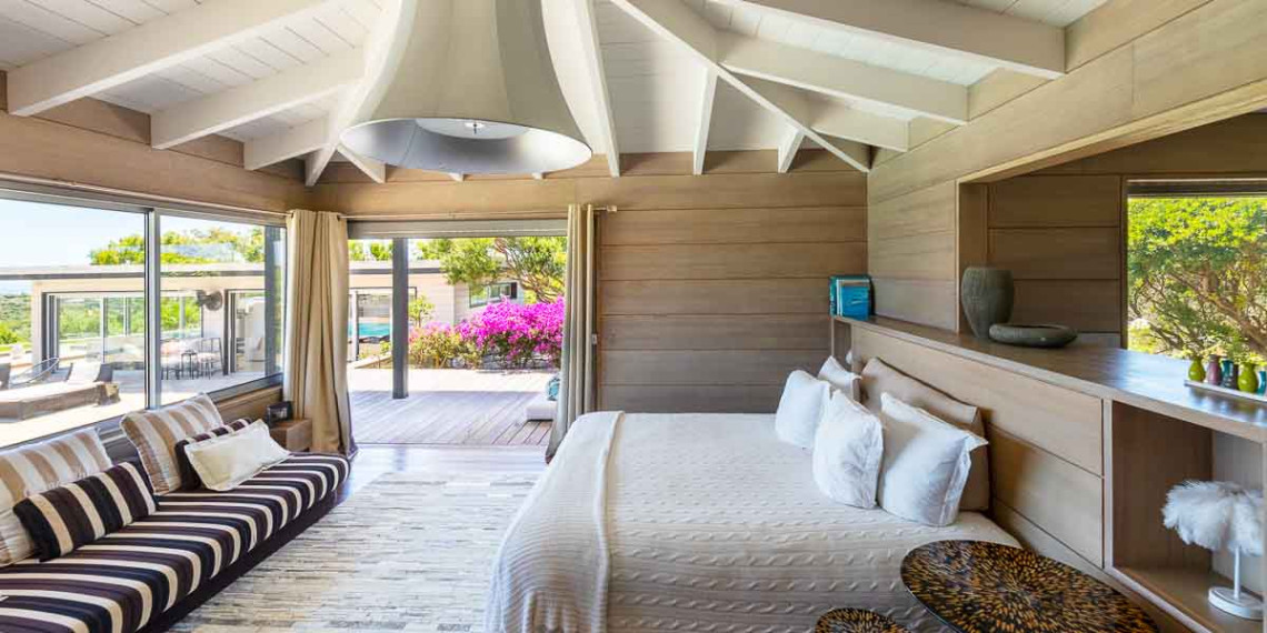This beautiful and modern red-cedar villa, in the architectural style of Sperone is located on the heights of Falatte Estate and offers a generous view opening onto the Piana, Cavallo + Lavezzi Islands and Sardinia.