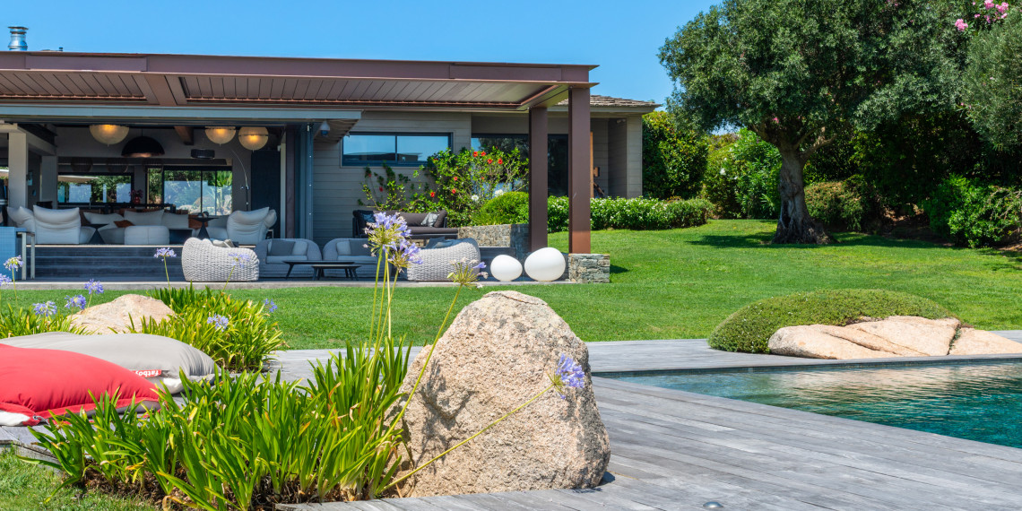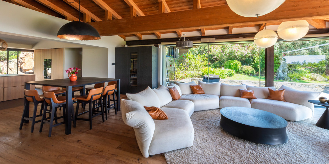 This totally contemporary and spacious (lauze) stone house built on a 4000 m² of land is 6 kilometres from Bonifacio and in front of the Golf of Sperone. Built in 2010 and renovated in 2020, this house dominates the eastern part of Sperone and enjoys a panoramic view of the sea and the islands. Barely visible from the road, the single-storey house blends in with the property and has been decorated in a refined and contemporary style, inviting you to relax in any of its spaces.