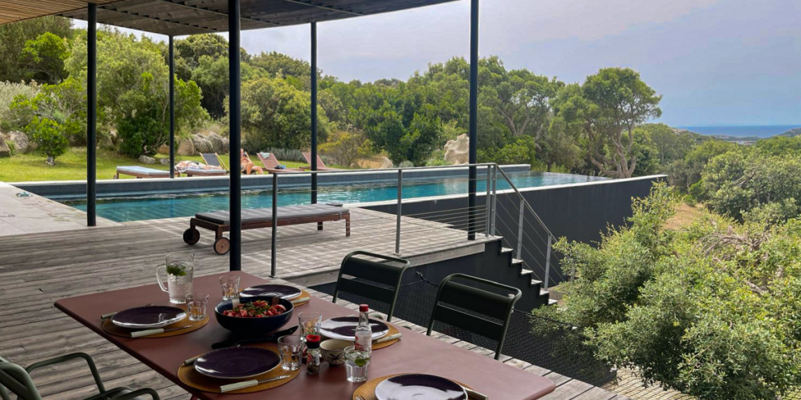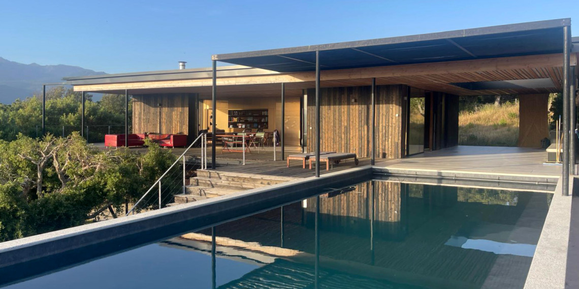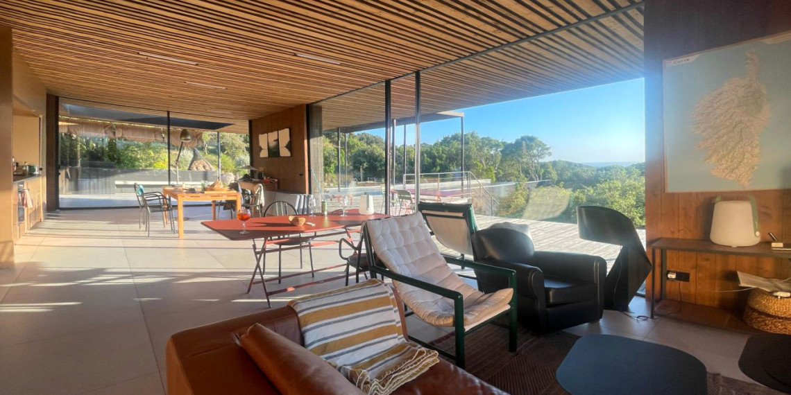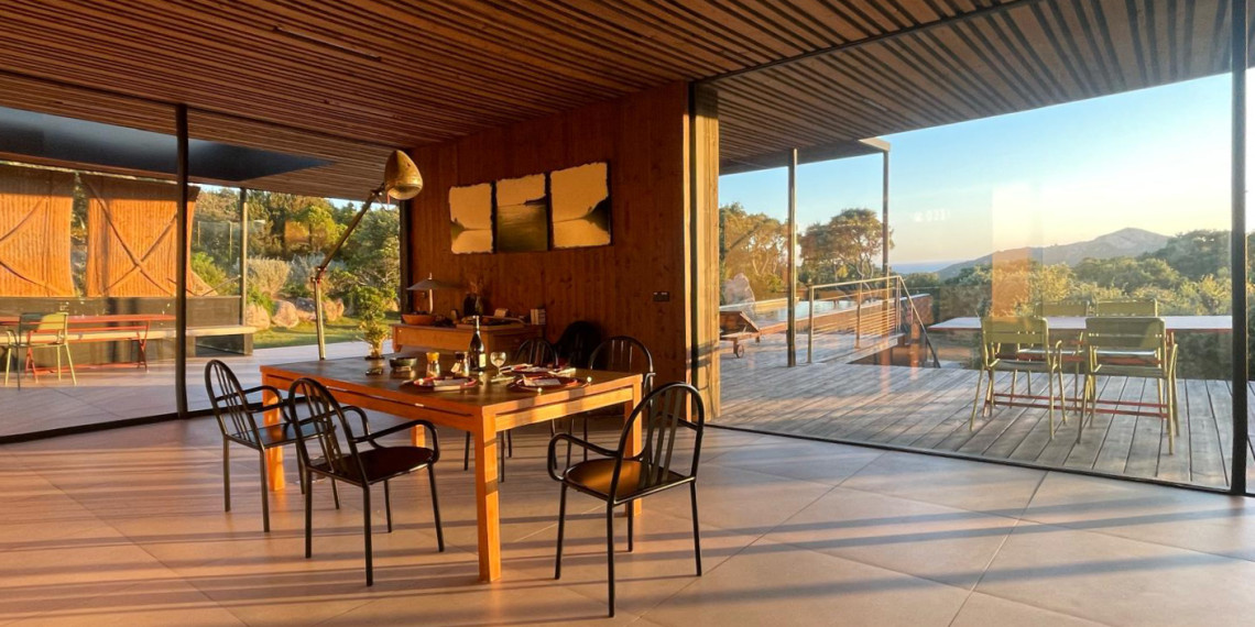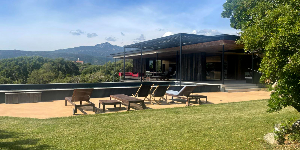 Au cœur du maquis et des bois corses, Casa Nera séduit par son architecture d’exception et son design unique. Ses lignes épurées, inspirées de l'architecture Californienne, et son mobilier design créent un intérieur lumineux, chaleureux et original, où chaque détail met en valeur la nature environnante.