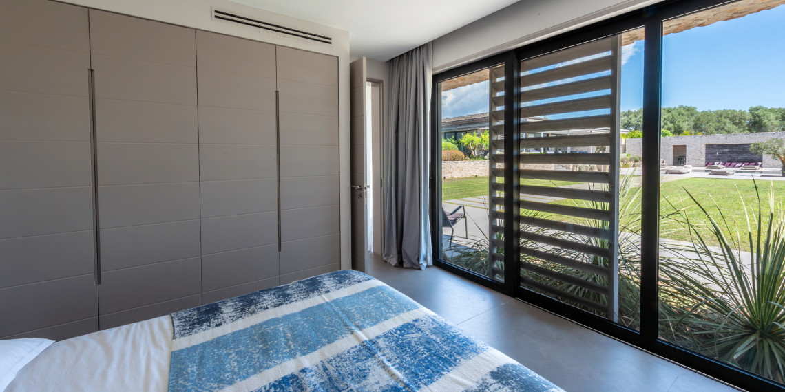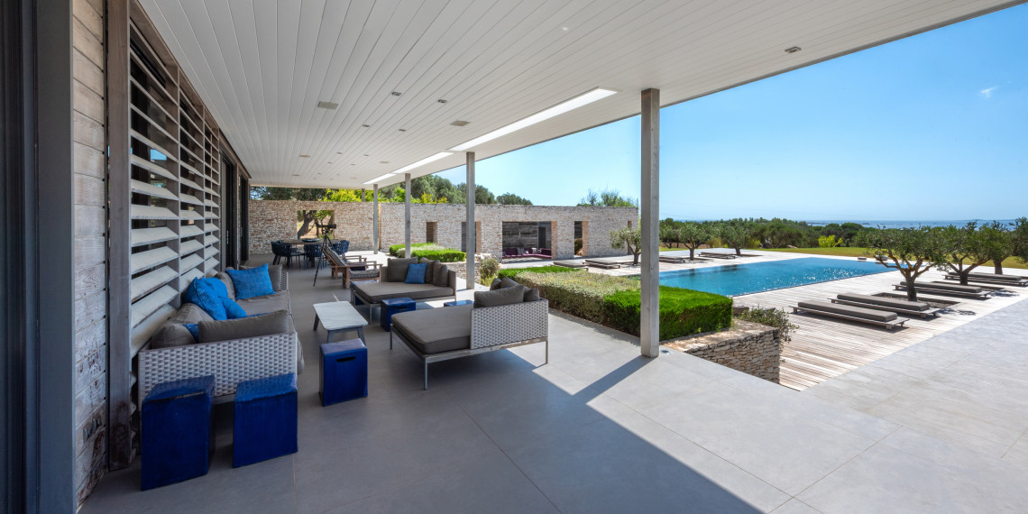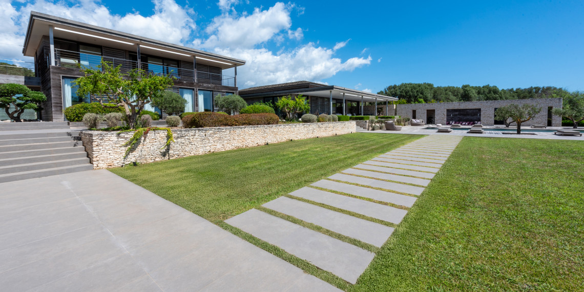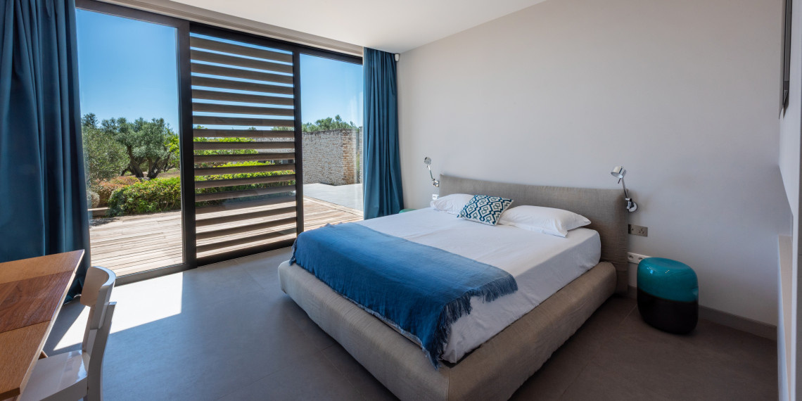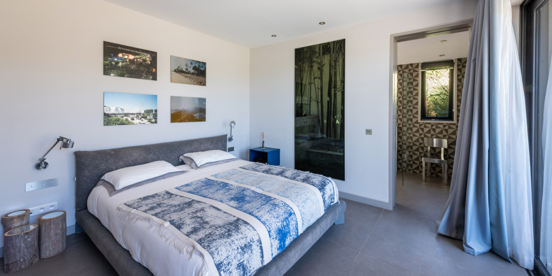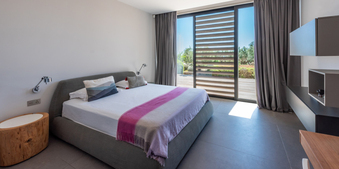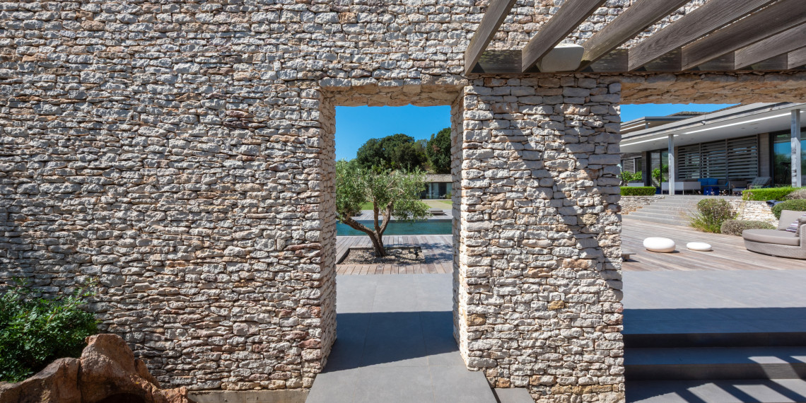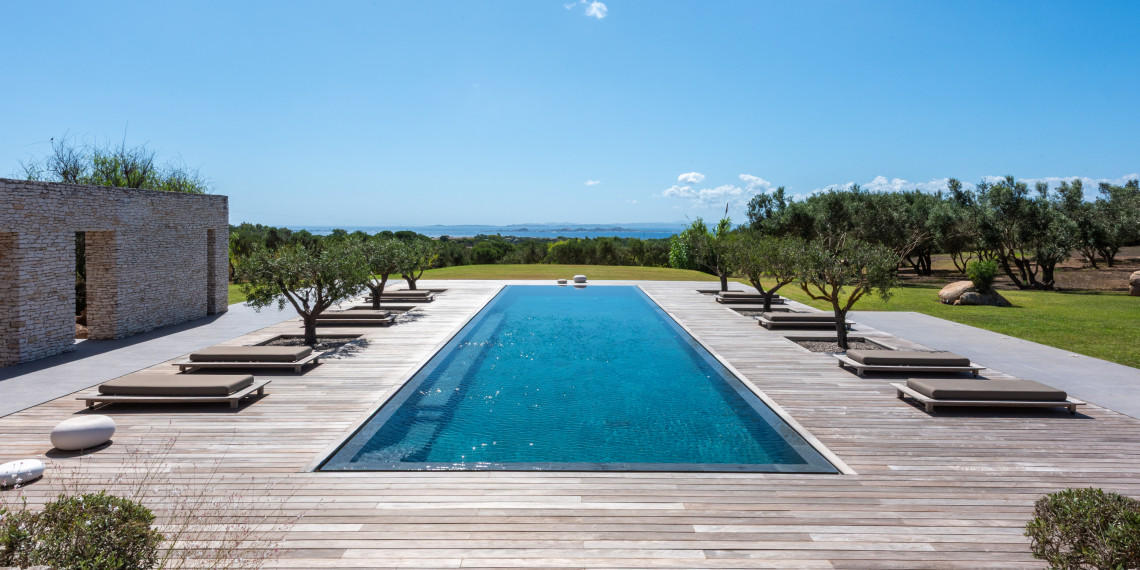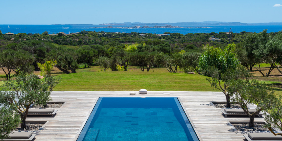 Dans un parc d'oliviers de 2 hectares, à proximité du Golf de Sperone, sa situation en retrait du littoral, profite d’ une vue panoramique sur les îles Lavezzi, Cavallo et l’archipel sarde. Les espaces extérieurs ont été soignés avec la mise en valeur d’une oliveraie centenaire qui entoure la bâtisse.