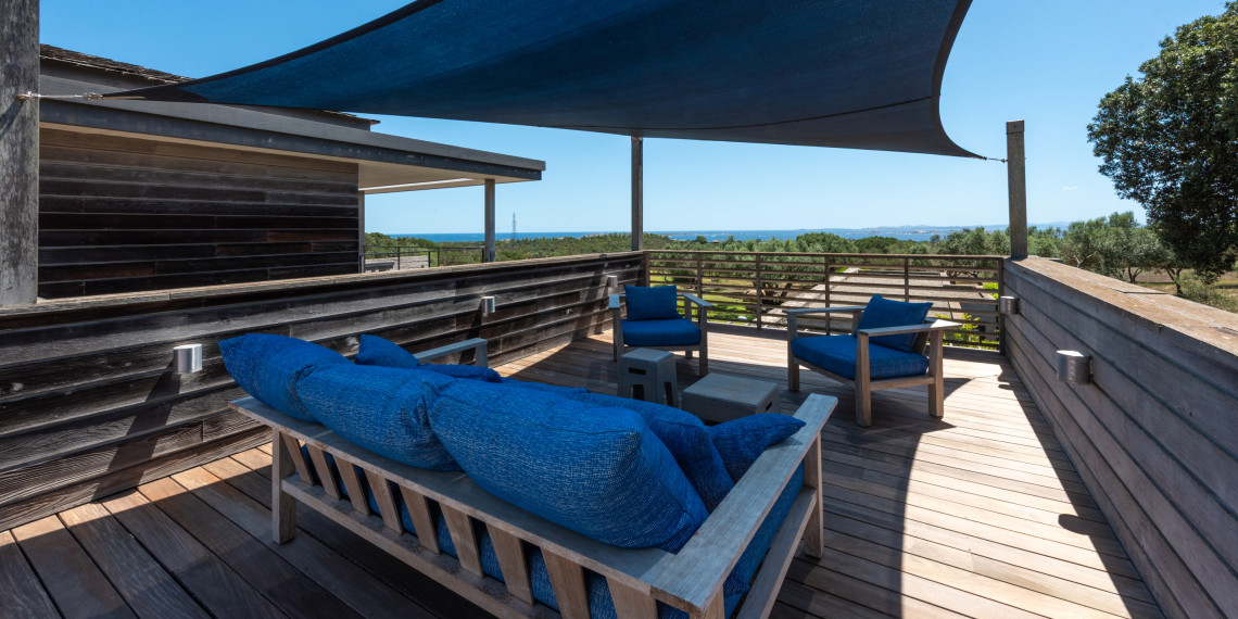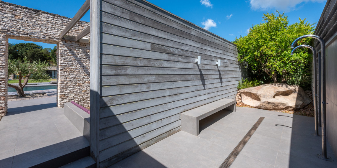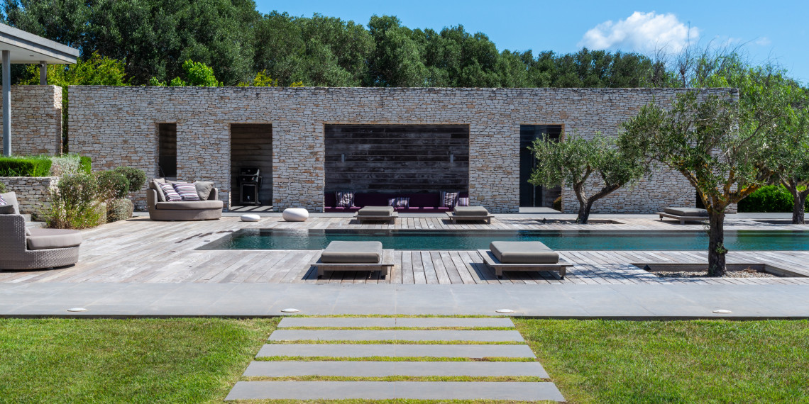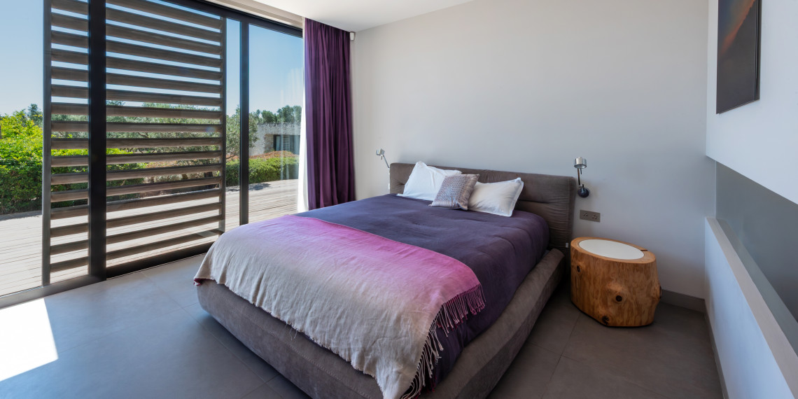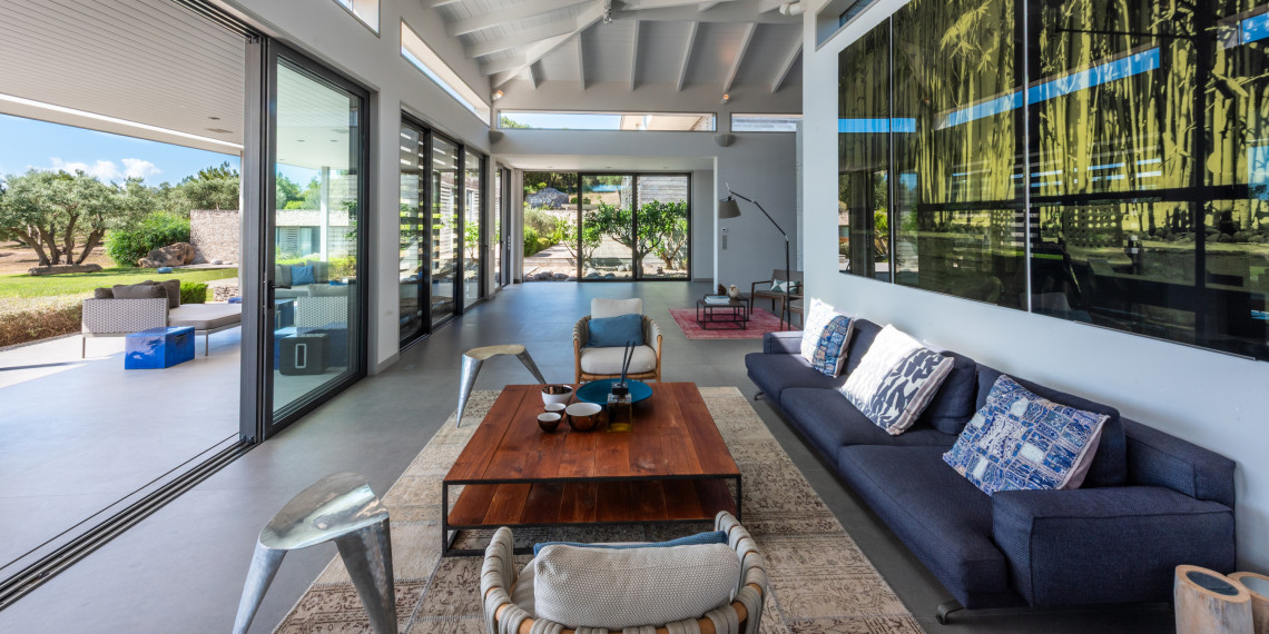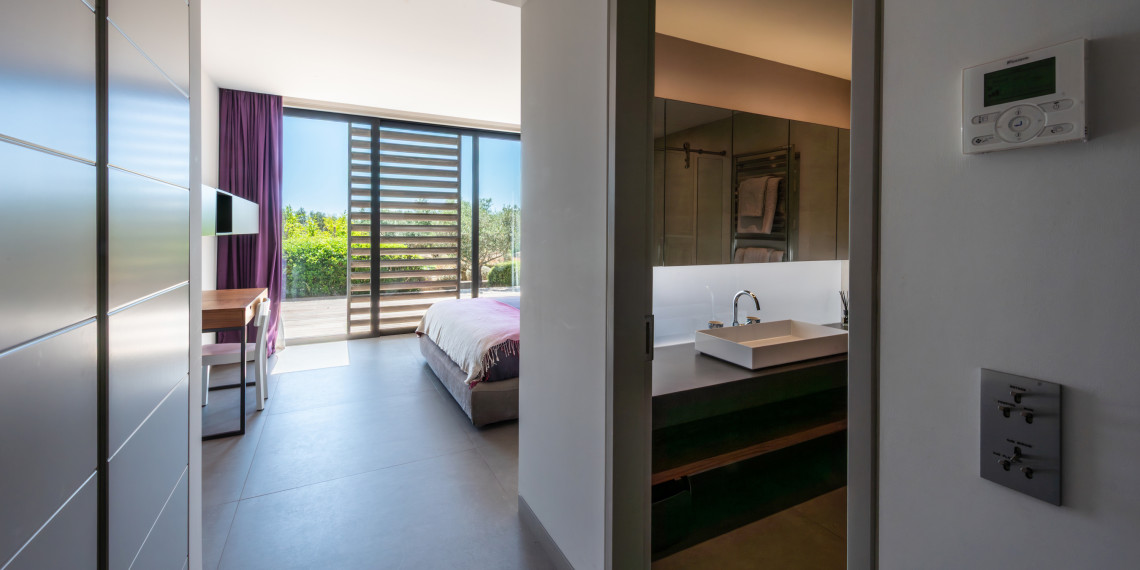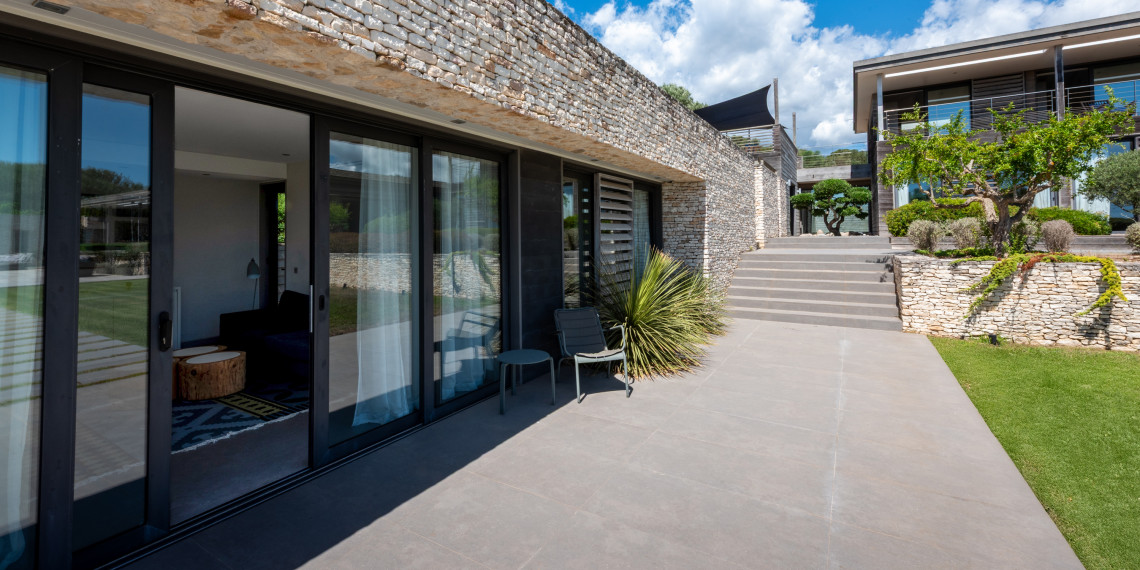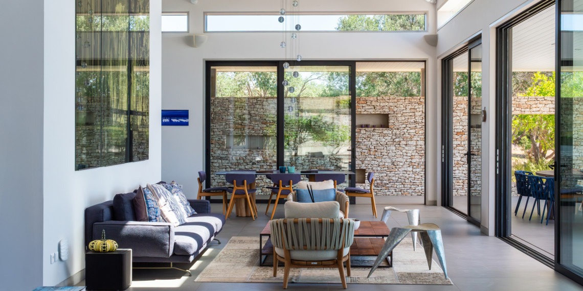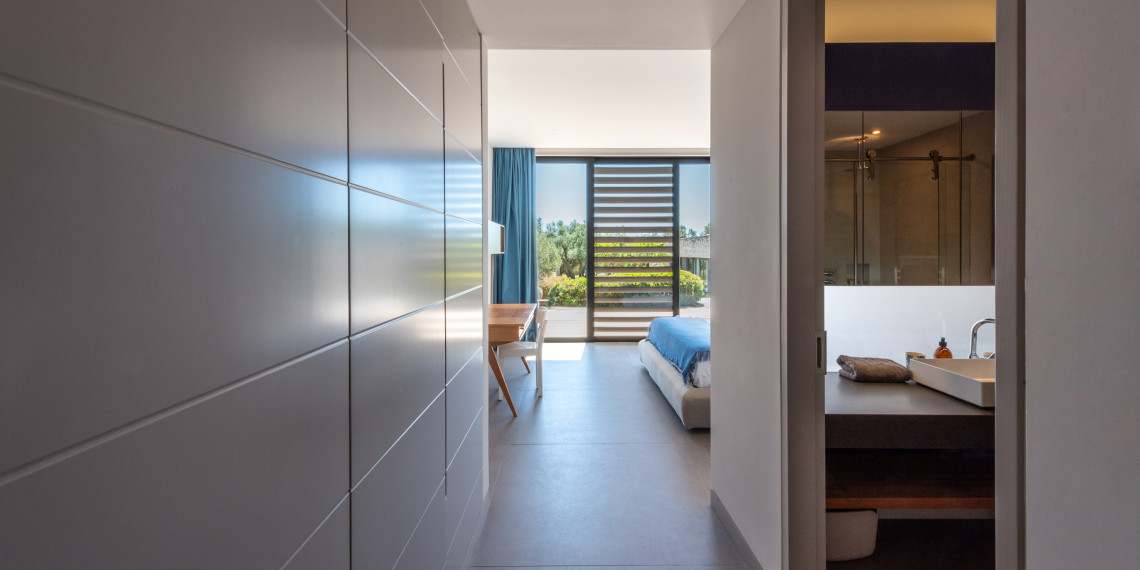 Dans un parc d'oliviers de 2 hectares, à proximité du Golf de Sperone, sa situation en retrait du littoral, profite d’ une vue panoramique sur les îles Lavezzi, Cavallo et l’archipel sarde. Les espaces extérieurs ont été soignés avec la mise en valeur d’une oliveraie centenaire qui entoure la bâtisse.