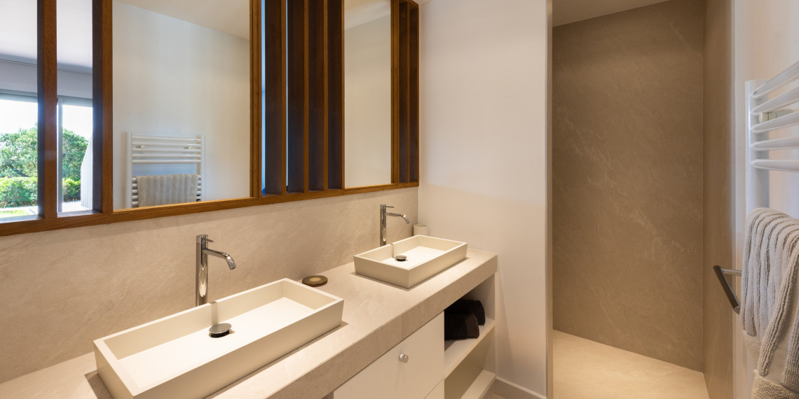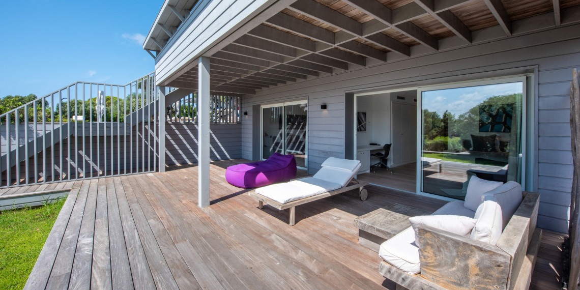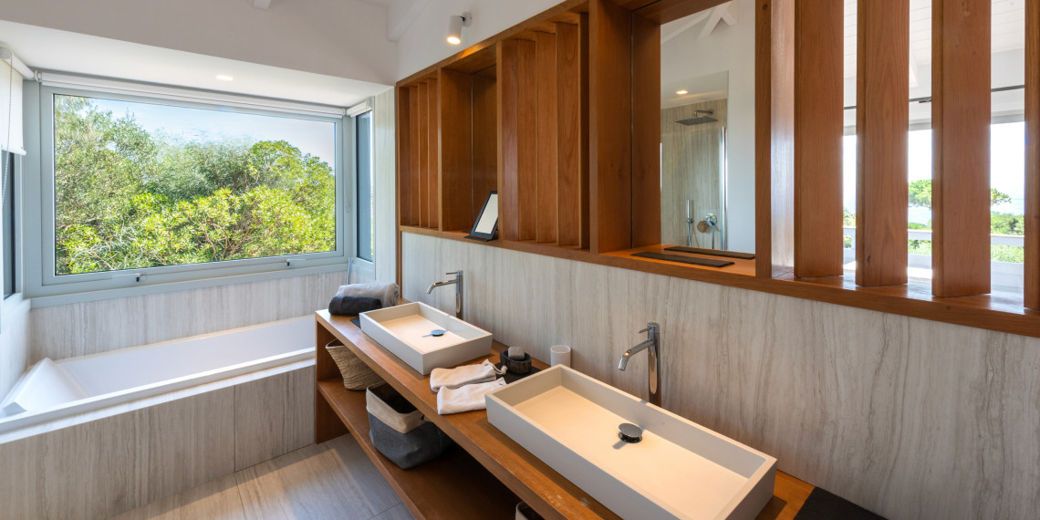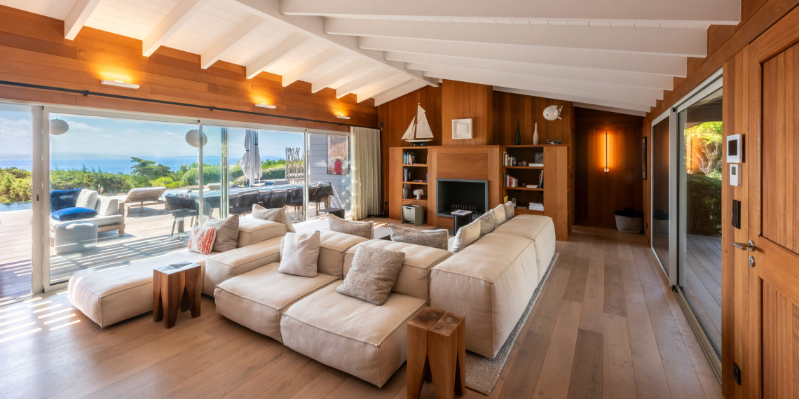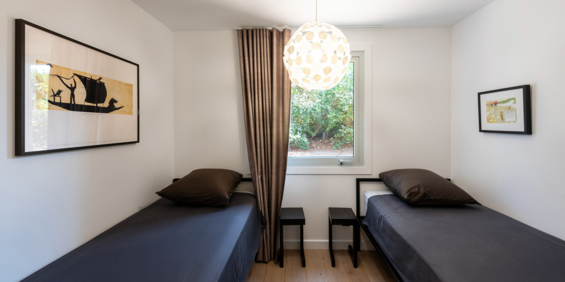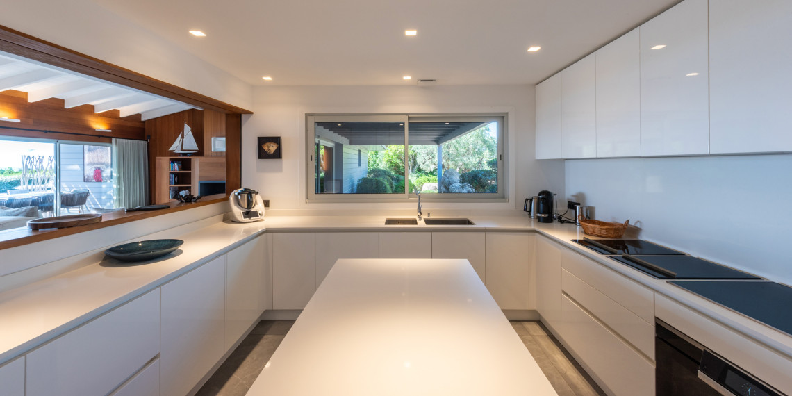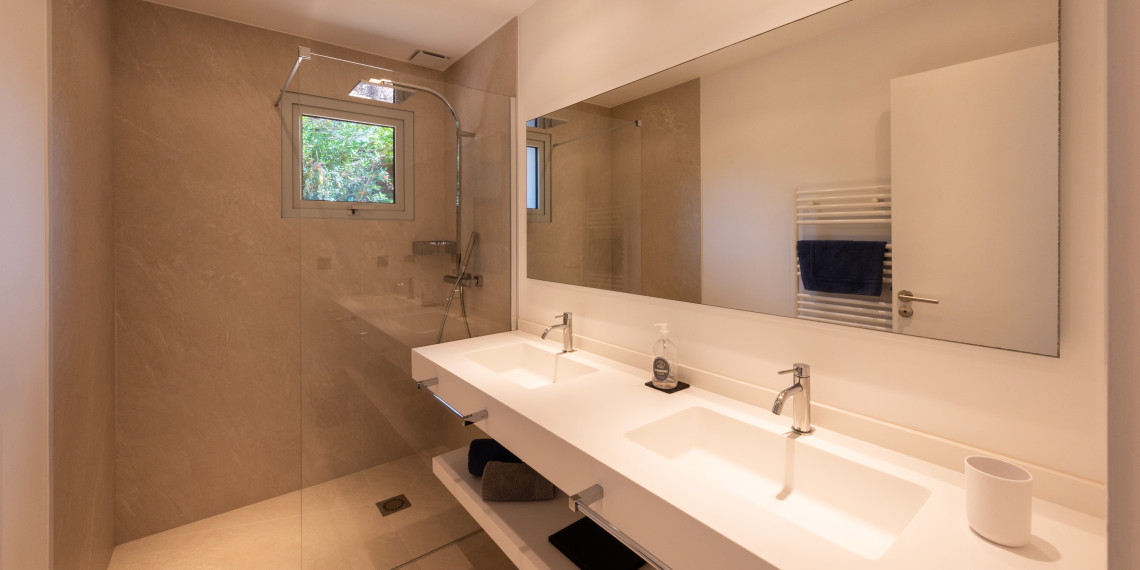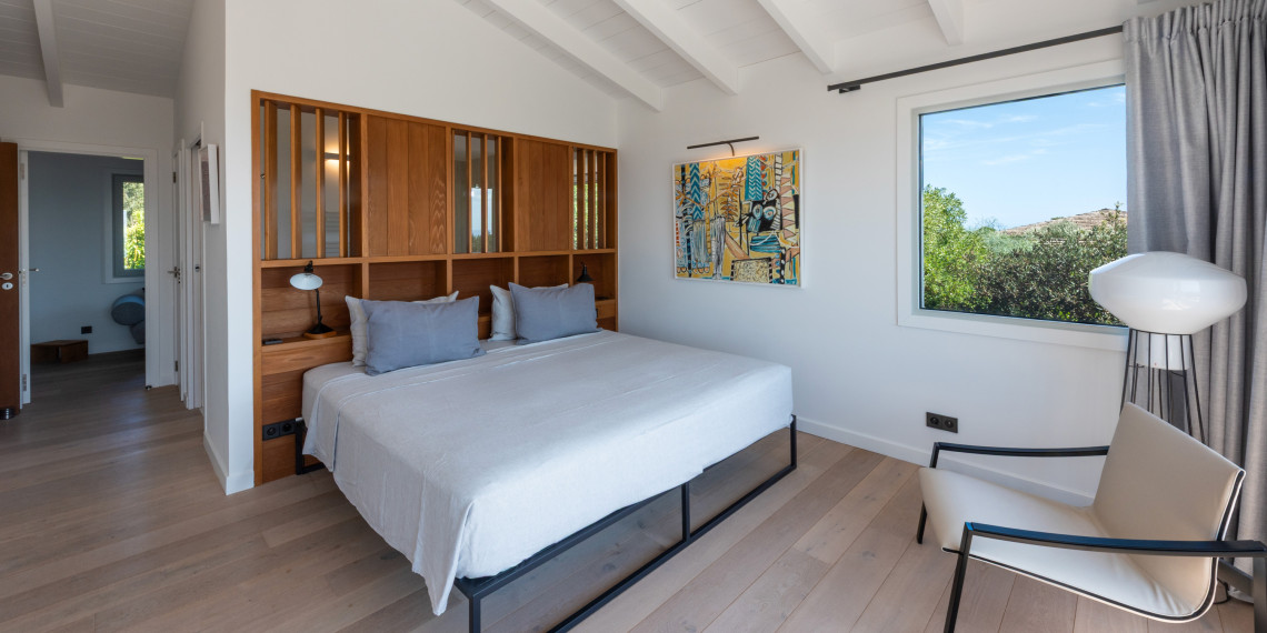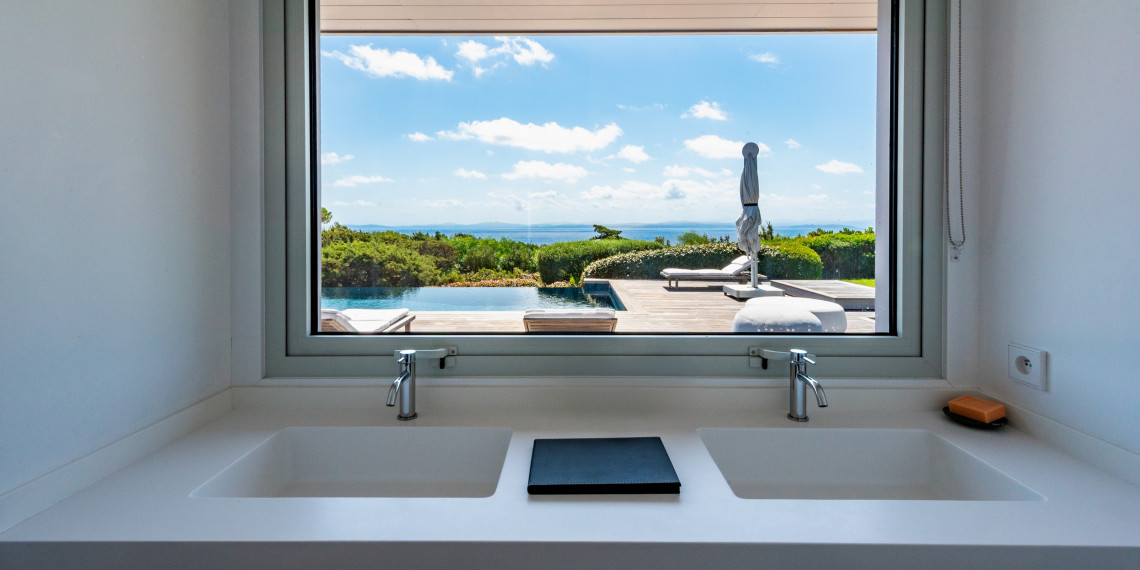 Sur 3 demi-niveaux, la villa épouse le terrain de façon agréable pour profiter dans chacun de ses espaces d'une vue mer ou végétale. De grandes terrasses encadrent la piscine à débordement. Cet ensemble atteint un équilibre parfait par les choix des matériaux de premier ordre effectué et une décoration particulièrement douce et raffinée. La vue mer sur les Bouches de Bonifacio est particulièrement prenante, la Sardaigne se détache sur l'horizon ainsi que les îles Lavezzi sur la partie Est.