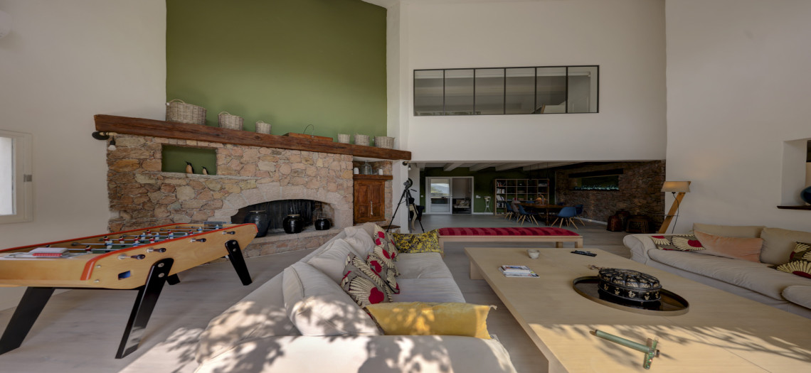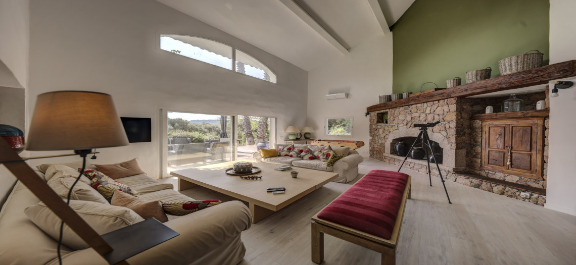 Au bout d'une piste en terre, dominant la baie de Sta Giuila et les îles du Toru, cette villa de standing de plain-pied comprend, outre ses 200 m² de terrasses, un séjour de 80 m2, un salon avec cheminée en pierre, une cuisine/terrasse, un cellier, 4 chambres spacieuses et 1 chambre enfants, une piscine avec pompe à chaleur de 10m x 5m avec coin ombragé dans un parc arboré et fleuri de 6 500 m2 et une aire de jeux pour enfants.